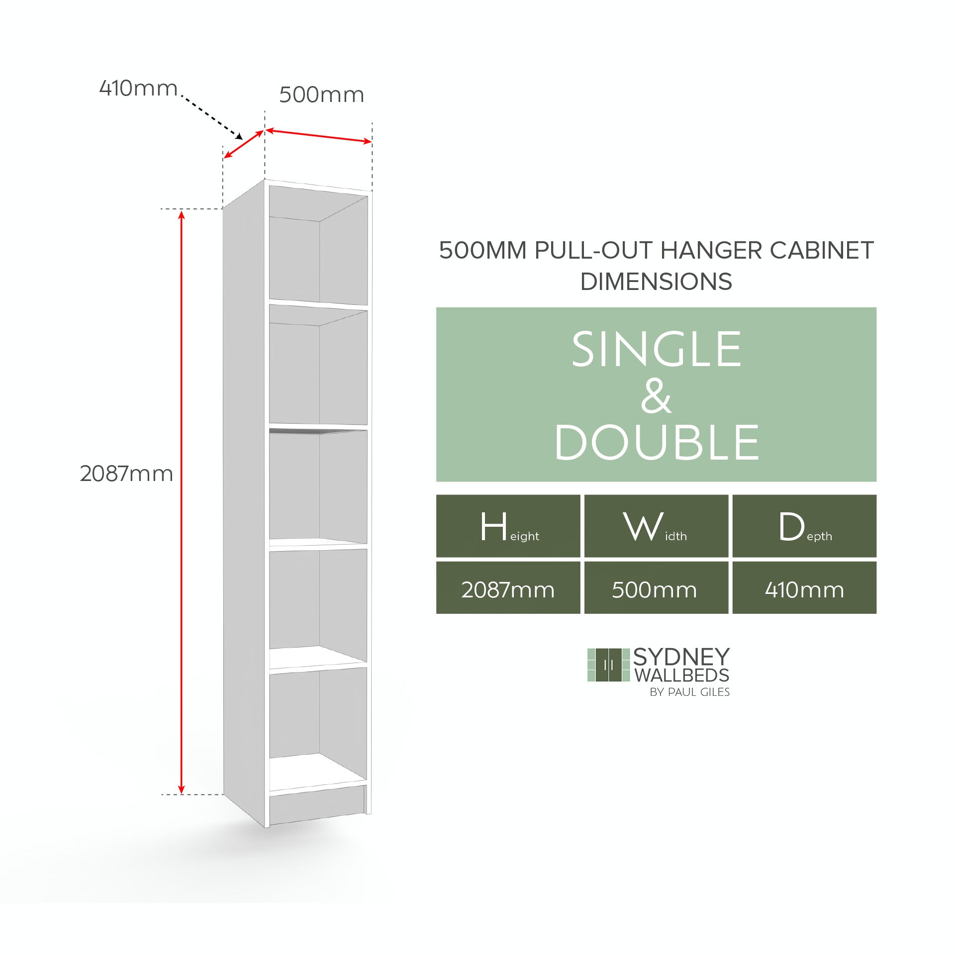 PULL-OUT HANGING CABINETS 500mm - Alpha WallBed - (Premium Colour Range)